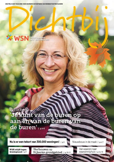 Dichtbij is het magazine van WSN, bedoelt voor al onze huurders, woningzoekenden en zakelijke relaties. Het blad verschijnt 4 keer per jaar en bevat een brede lifestylemix met onderwerpen die gaan over het thuisgevoel en de woonbeleving van onze bewoners. Het magazine laat zien wie wij zijn.