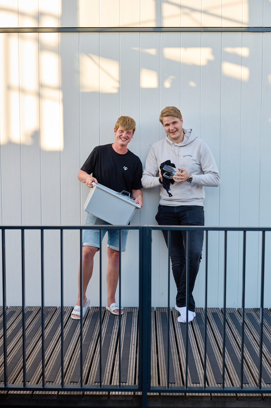 Karsten (21) en Daniël (24) zijn buren, collega’s én vrienden. Sinds februari wonen ze in de nieuwe buurt Wonen bij Jaap in Nijkerk: een duurzame woonplek voor jongeren en starters met instapklare studio’s en appartementen. Alles draait hier om betaalbaar wonen én samen leven. Met een gezamenlijke tuin, een paviljoen met wasserette en bewonersactiviteiten maken de bewoners samen de buurt.