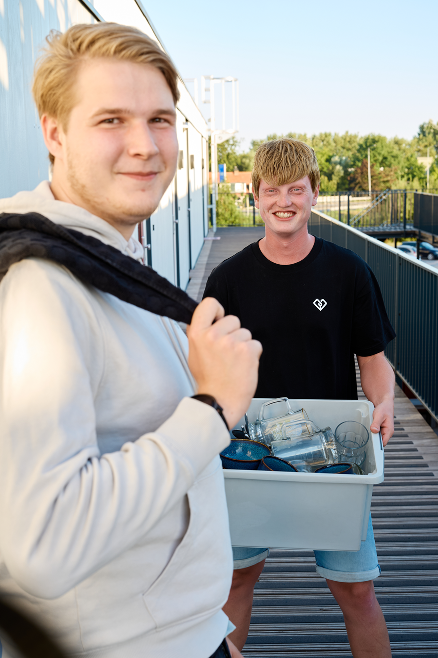 ‘We zijn wel een beetje de groep geweest die dingen heeft moeten uitzoeken,’ zegt Daniël. Karsten: ‘Er was nog niks: geen appgroep, geen activiteiten. Dat hebben wij met een groepje opgezet. Nu is er van alles: een hardloopclub, een gezamenlijke barbecue, een game-avond.’