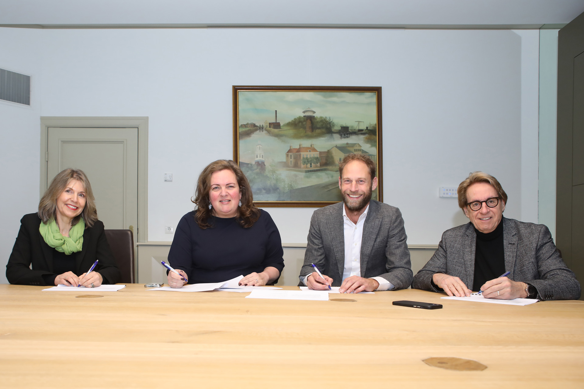 Regiodirecteur Joan van der Burgt (de Alliantie), wethouder Esther Heutink-Wenderich (gemeente Nijkerk),