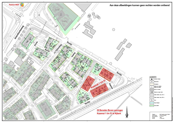 • De 26 beneden- en bovenwoningen liggen aan Kazemat 1 t/m 51 in Nijkerk
